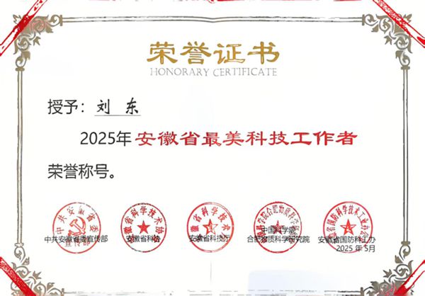 劉東獲2025年“安徽省最美科技工作者”榮譽(yù)稱(chēng)號(hào)