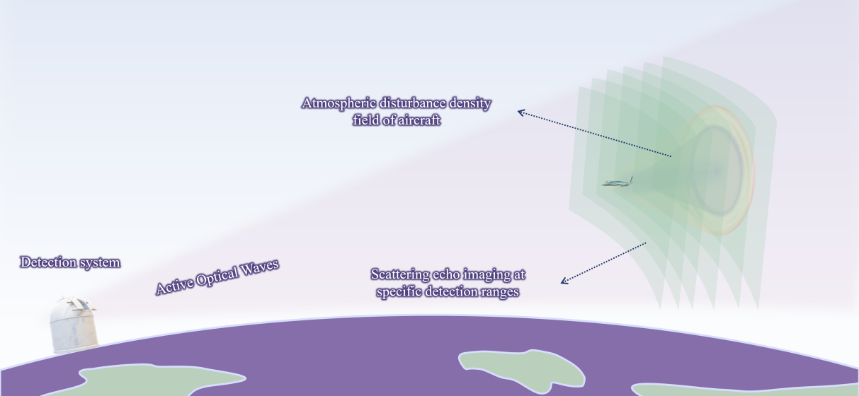 研究團隊提出,利用主動光源探測大氣擾動密度場特征,從而遠距離感知飛行器存在的構(gòu)想。根據(jù)大范圍擾動物理場的流體模擬數(shù)據(jù)分析了空間異質(zhì)特性,針對性地設計了對大氣擾動區(qū)域散射光進行三維層析成像的探測模式。構(gòu)建了飛行器擾動密度場空間分布模型和光散射回波成像仿真模型,模擬了地基探測平臺百公里級遠距離光散射回波圖像。在此基礎(chǔ)上,提出了擾動信號提取方法,重點分析了探測分辨尺度與擾動光學信號特征強度之間的相關(guān)性規(guī)律,進而闡明擾動密度場特征的光信號轉(zhuǎn)換關(guān)系。