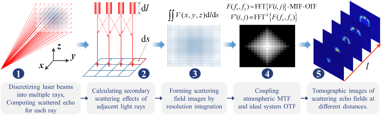 大氣擾動密度場光散射回波信號成像仿真模型框架和工作流程示意圖