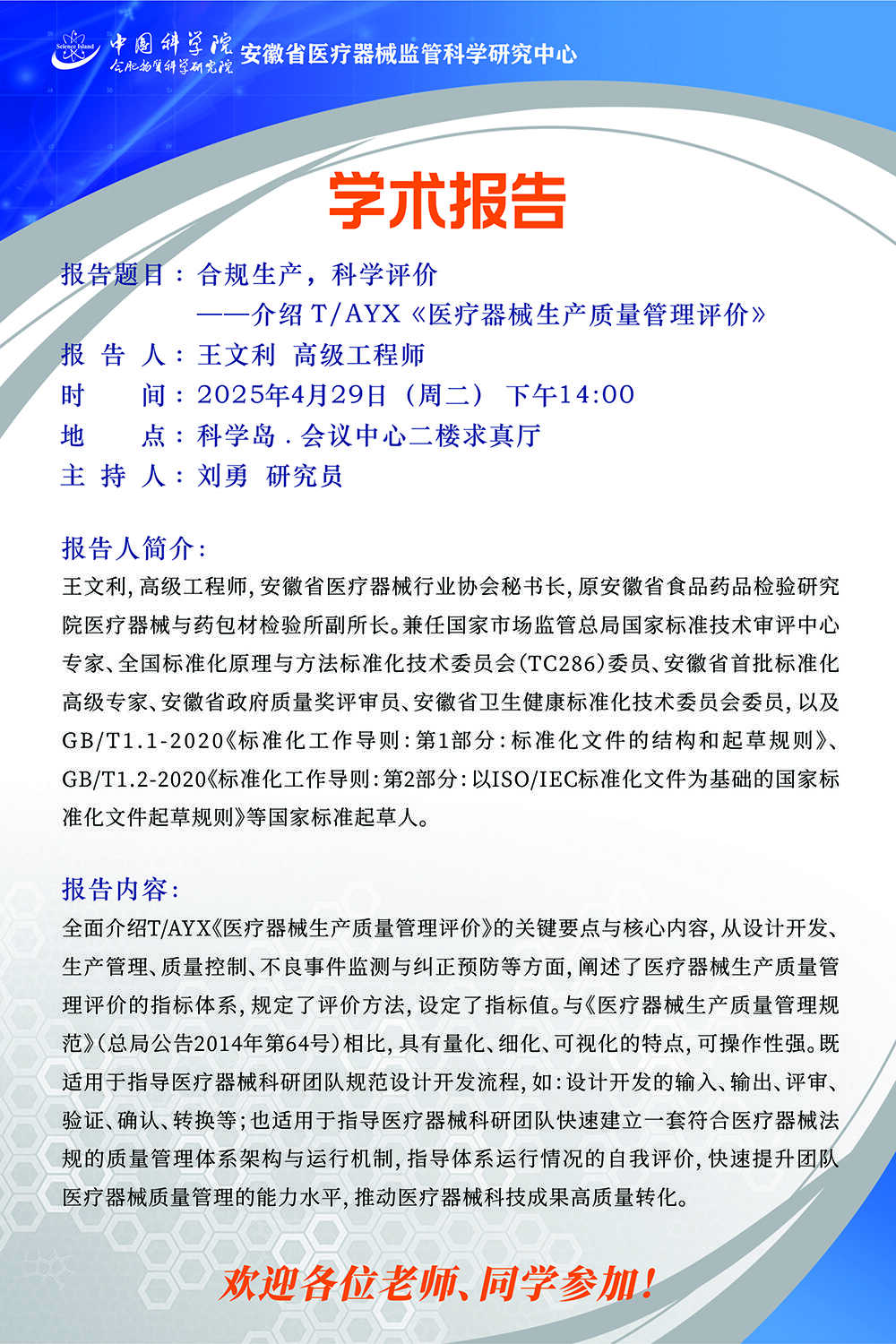 學(xué)術(shù)報(bào)告:合規(guī)生產(chǎn),科學(xué)評(píng)價(jià)——介紹T/AYX《醫(yī)療器械生產(chǎn)質(zhì)量管理評(píng)價(jià)》(4.29)