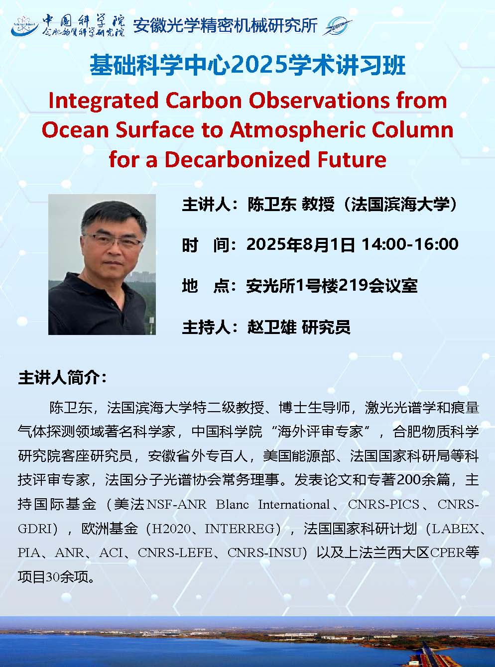 基礎(chǔ)科學(xué)中心學(xué)術(shù)講習(xí)班:Integrated Carbon Observations fromOcean Surface to Atmospheric columnfor a Decarbonized Future(8.1)